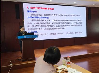 本次活动邀请了本工作室三位省级后备教学名师进行教学专题报告。李换琴教授作了题目为“浅谈在线性代数教学中培养学生创造性思维”的报告,吴慧卓教授作了题目为“激发学习兴趣、提高解决问题能力、培养创新意识——将恰当的数学建模问题融入到高等数学教学中”的报告,赵小艳教授作了题目为“数学思维能力培养的实践与思考”的报告。三位老师结合自身在教学实践中的探索和经验,对所选的教学专题进行了精彩的讲解,分享交流了教学心得和感悟,内容详实、举例丰富,与会教师颇受启发。工作室指导专家组成员对报告作了点评。