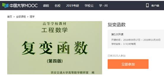 2018年9月17日,由我院《复变函数》课程团队倾力打造的《复变函数》MOOC课程于在中国大学MOOC平台上线。