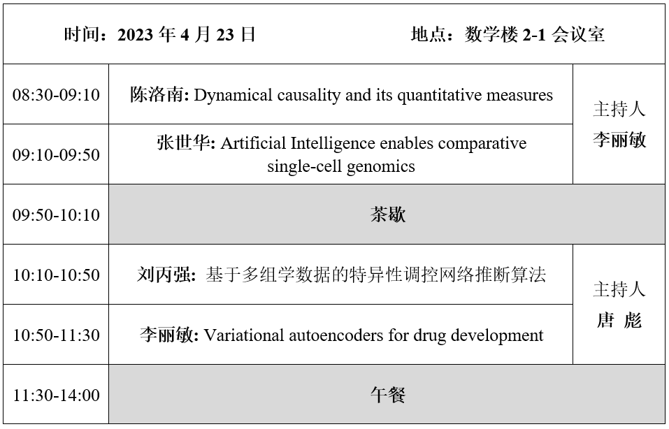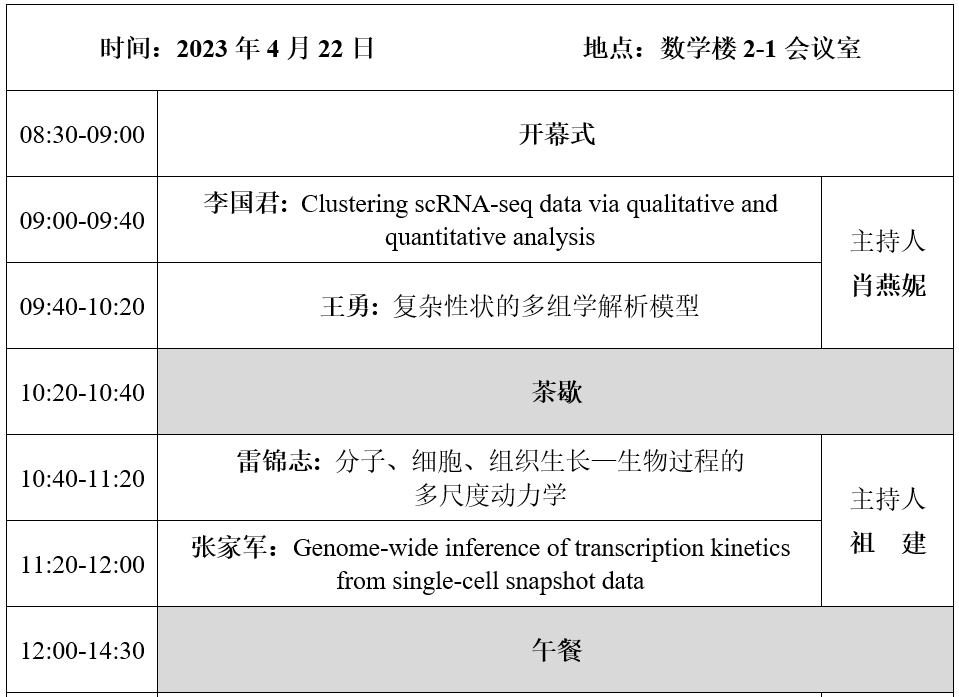 “生物信息与计算系统生物学研讨会”由国家天元数学西北中心主办,旨在交流探讨生物信息学及计算生物学前沿问题,包括单细胞数据、空间转录组数据和多组学数据的前沿算法研究,以及复杂生物系统的多尺度动力学和临界状态预警方法建模。通过邀请国内生物信息、系统生物学领域的专家解读前沿问题,介绍相关建模方法与算法,搭建起领域内学者相互交流与合作的平台。