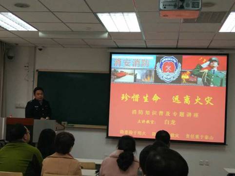 1110日,学院特邀了消安消防宣教中心的白龙教官为学院师生代表做消防知识讲座。学院党委副书记易媛教授和保卫处薛顺林老师出席了本次活动。