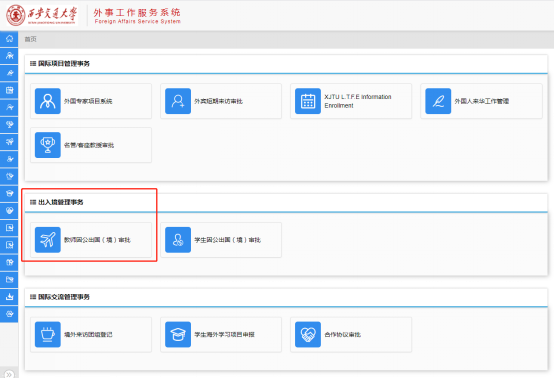 西安交通大学外事工作服务系统:http://ims.xjtu.edu.cn/Main/LeftMenuT.do